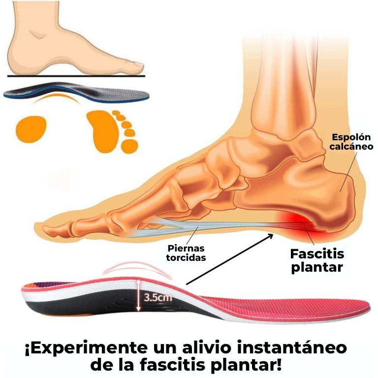 Estas plantillas ortopédicas están diseñadas para aliviar instantáneamente el dolor en los pies con cada paso que des. Gracias a ellas, el dolor se convertirá en cosa del pasado, especialmente si padeces de fascitis plantar o el síndrome del pie plano.