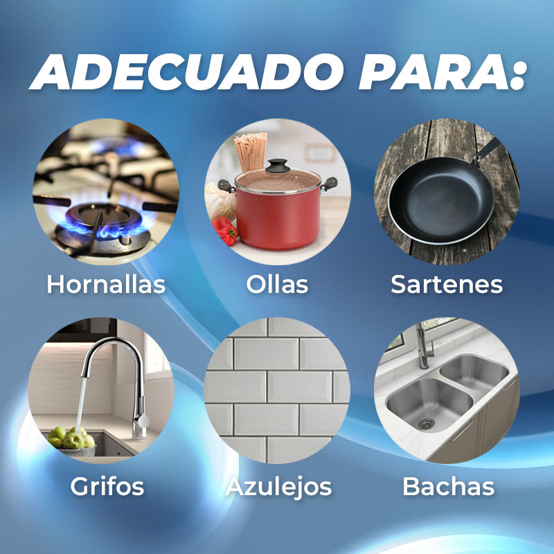 Con un simple rociado y limpieza, podrás ver cómo tus utensilios de cocina recuperan su brillo original. No más largas jornadas de limpieza; con este producto, todo queda resplandeciente en minutos. Simplifica tu vida y disfruta de una cocina impecable sin esfuerzo.