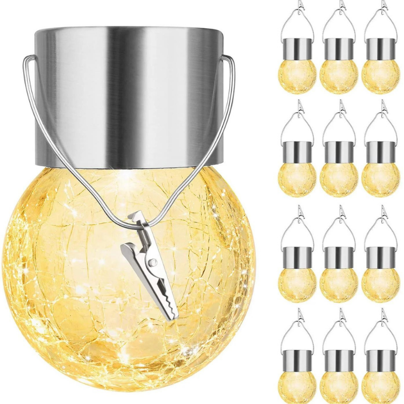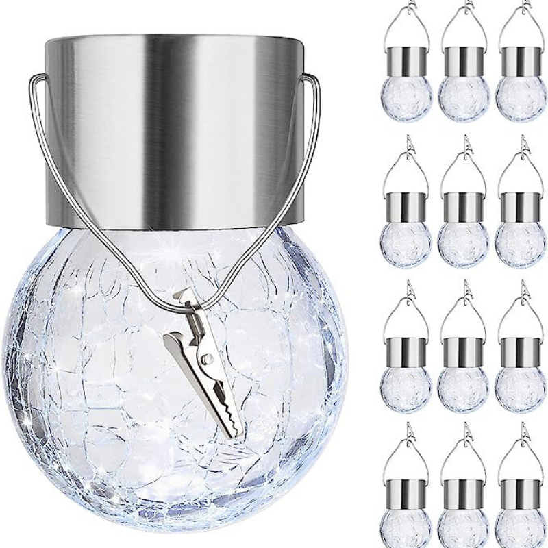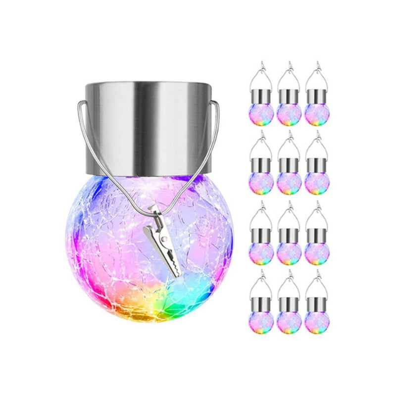Las luces solares de vidrio crepitante crean una atmósfera maravillosa al emitir varios colores, lo que las convierte en una excelente opción de decoración para interiores y exteriores. Estas luces colgantes solares para exteriores son ideales para mejorar la estética de su jardín, árboles, patios, patios y caminos con un toque decorativo.