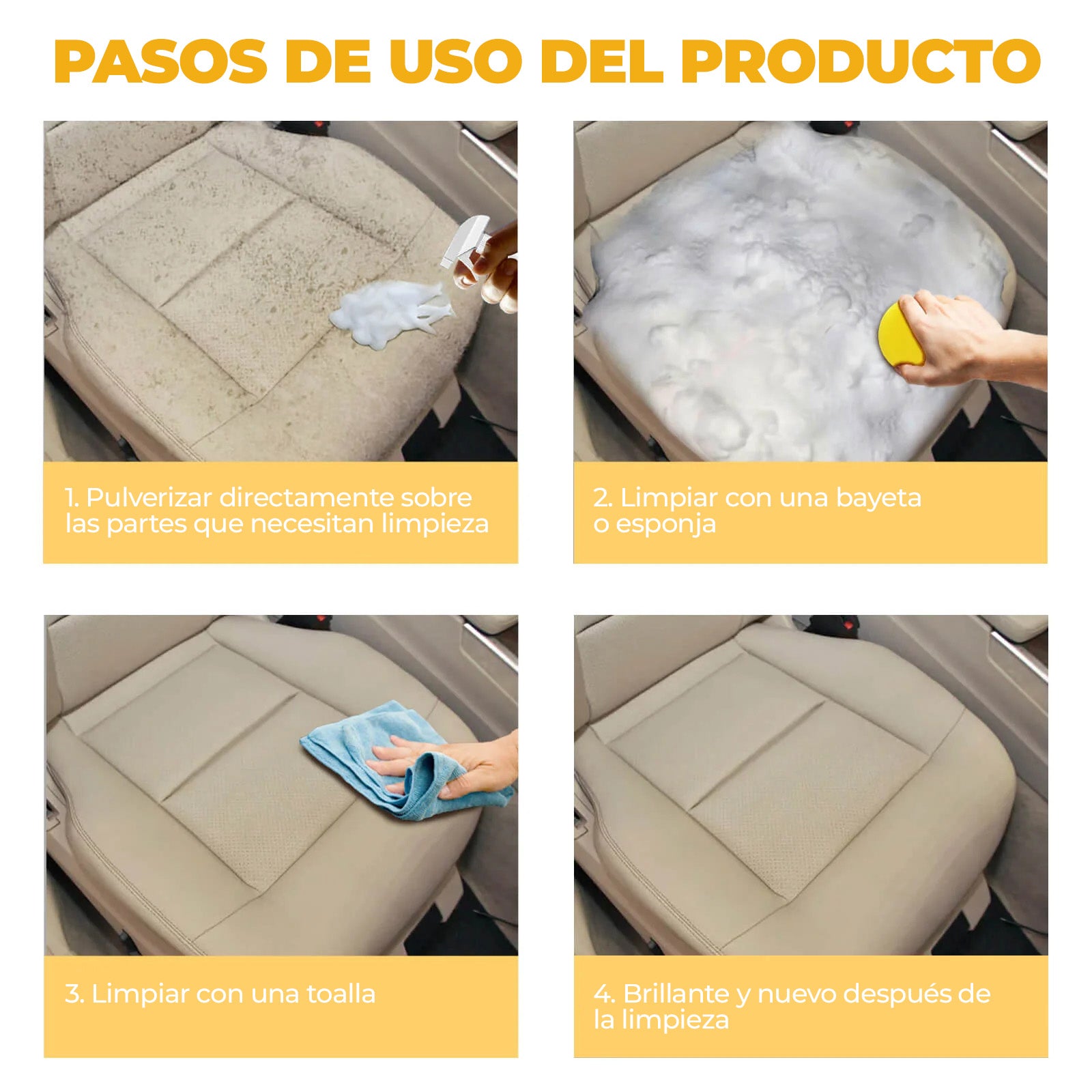 Solo rocía con el limpiador directamente en el área deseada y usa una toalla o esponja para limpiar hasta que la mancha desaparezca. Es adecuado para una amplia gama de superficies en vehículos, cocinas, tela, cuero, vidrio, caucho, metales, capa de gel, etc.