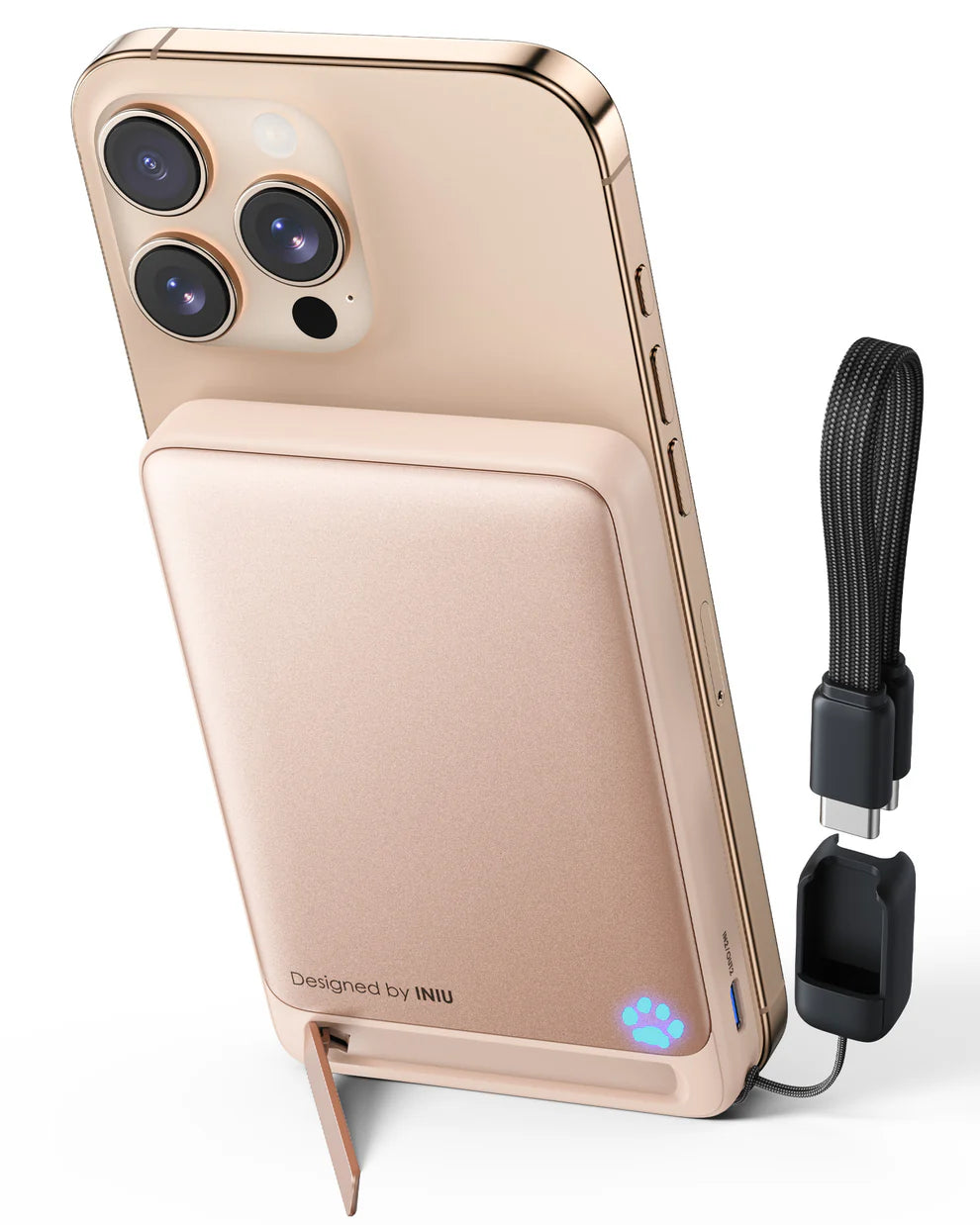 Este cargador inalámbrico Qi2 de 15 W con batería de 10 000 mAh te permite alimentar tu dispositivo sin enredos ni adaptadores adicionales. Gracias a su stand integrado, solo tienes que apoyar tu teléfono para que empiece a cargar de inmediato, ya sea en la oficina, en un café o de viaje. Su carcasa de aluminio reforzado garantiza una durabilidad excepcional y protección contra golpes y caídas.
