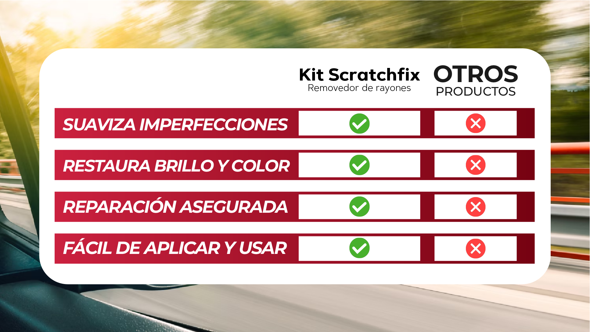 Si estas cansado de siempre encontrar rayones e imperfecciones en la superficie de tu auto, entonces necesitas de la ayuda de Kit Scratchfix™. Gracias a su potente crema con nano tecnología, podrás deshacerte de todo los rayones que posee tu vehiculó y hacerlo brillar de nuevo.