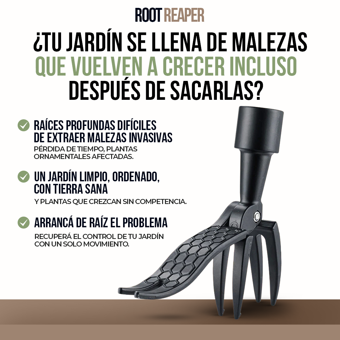 Gracias a su estructura reforzada y sus 5 uñas afiladas, RootReaper™ funciona en terrenos blandos, compactados, arcillosos y arenosos sin perder eficacia. Su diseño ergonómico permite aplicar fuerza mínima para lograr una extracción profunda y completa, evitando que la maleza vuelva a brotar.