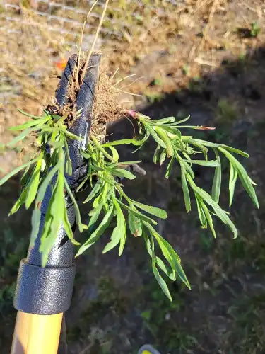 Mientras otras herramientas solo cortan la parte superficial, RootReaper™ extrae la raíz completa, asegurando una limpieza real y duradera del jardín. Su construcción resistente soporta el peso del usuario sin doblarse ni romperse, a diferencia de modelos económicos que fallan con el uso.