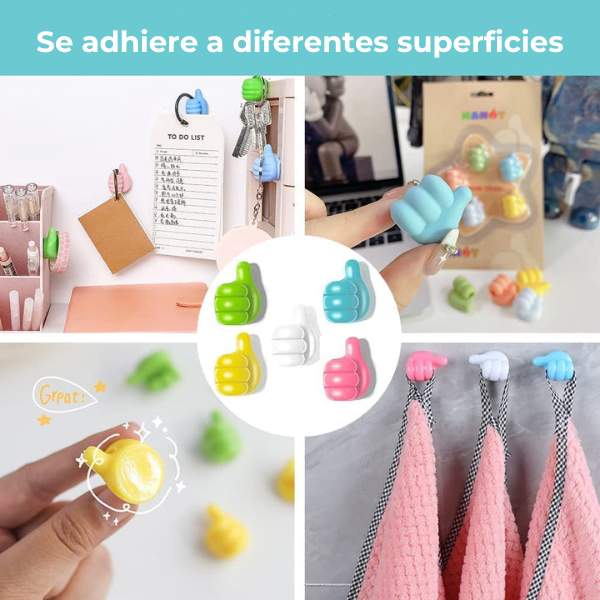 Este práctico gancho conforma de pulgar puede usarse como clip para organizar cables, estantes de cocina, para artículos pequeños, soporte para cepillos de dientes en el baño, soporte para bolígrafos en la oficina, soporte para lentes en el auto, clip para flores y plantas, etc.